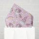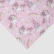 An Adorable Pink Tissue Paper Of White Unicorns, Pink Castles And Rainbows In The Sky