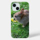 A delightful image of a cute little baby rabbit engrossed with a yellow dandelion.