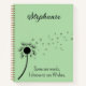 This sweet notebook features a dainty dandelion with it's little petals blowing in the wind. Below it says "Some see weeds. I choose to see wishes." It's set against a pale green background and you personalise it at the top with your name in a pretty script. There are several different papers to choose from, including wide ruled, graph paper, recipe paper, drawing paper and more and there are a variety of background colours available in our shop.