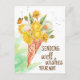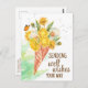 Dandelion well wishes thinking of you postcard template. Bunch of blooming dandelions, dandelion puffballs, a little butterfly in an ice cream waffle cone.