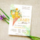 Dandelion wishes baby shower invitation template. Bunch of blooming dandelions, dandelion puffballs, a little butterfly in an ice cream cone.