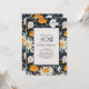 90th birthday party invitation for women designed with pretty little yellow dandelions and white daisies on a navy blue background. Personalise by adding the name of the guest of honour, her age, and her party information. Contact us for help with customisation or to request matching products.