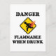 Danger Flammable When Drunk - Funny Fart Humour Postcard