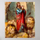 Daniel in the lion`s den poster has Daniel in the lions den with four or five lion wanting to eat him he has a red cap and blue dress on