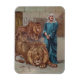 Fridge magnet with a vintage children's book illustration of God protecting Daniel from harm in the lion's den.