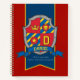 Daniel name meaning shield red blue boys notebook. Galiant royal crown knights style crest shield monogram letter D art name perfect for kids and teens in shades of red, blue, grey and yellow. Personalise with your own name beginning with D and name meaning or a message or subject for a personalised touch. Reads Daniel God is my judge Intuitive, determined and magnetic. Unique royal style crest drawing, featuring a lions head, crown, star and initial monogram D letter, graphic art and design by Sarah Trett for www.mylittleeden.com and namesense