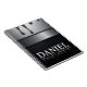 Polished chrome nameplate reading Daniel with dripping liquid metal and strong reflective highlights. Embossed 3D typography on a sleek dark background evokes luxury, modern branding, industrial design and custom identity.