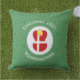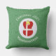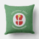 Christmas decor outdoor pillow has an angel dressed in the red and white flag of Denmark. The Danish Christmas angel is in the centre of a circle of white squiggly squares surrounded by a background of green squiggly squares. Add your own text or personalise with a name and customise with the year.