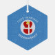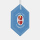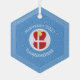 Hanukkah decor hexagon shaped glass ornament for the holiday season shows an angel wearing the red and white flag of Denmark. Designed for families of multiple religions, the Hanukkah Danish angel is found in the centre of white squiggly squares, surrounded by blue squiggly squares. Add a name to personalise. Customise by adding the year. Or, add your own text.