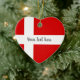 Personalised Danish flag of Denmark Christmas tree ornament . Custom Merry X-mas Holiday decorations in round or heart shape. Patriotic country flag design. Scandinavian heritage theme xmas decor for friends, family, kids, co worker, employee, boss, children, wedding couple, newly weds, mum and dad, grandparents, relatives, baby etc. Add your own season's greeting and photo on the back optionally. Elegant script typography template. Gold glittery string included. Create your own Scandinavia keepsake for 1st Christmas together, family reunion or other occasion.