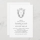The simple yet classic design features an elegant and timeless crest monogram with florals and greenery surrounding the initials of the couple.
