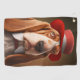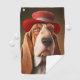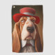 Dapper Basset Hound with Red hat and a small red bowtie.