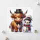 Dapper Highland Cow with Snowman Friend Holiday Card