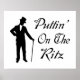 Now here is a dapper man, all dressed up for a black tie affair in a tuxedo and top hat, complete with a cane. He is definitely puttin' on the ritz tonight!