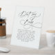 This black and white don't say baby game baby shower pedestal sign from the Darcy Collection is perfect for a simple baby shower. The modern minimalist design features timeless black and white romantic calligraphy with bohemian fairytale style.