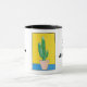 This mug is decorated with a simple, original art drawing of a euphorbia cactus. It is in a pot, tall, green, spiky and has three lobes. You can choose your style of mug, add your name, and alter the words if you wish. This one states; Dare to be different. The artwork is only available from The Art of Being Beth.