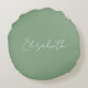 Dare to Dream Inspirational Saying Sage Green Chic Customised Name and Text Round Pillow. On the front of pillow, it is written "Dare to Dream" or you can personalise with your own text too. On the back of pillow, customised it to your name or your own text. Perfect for going away to college gifts or for someone who needs words of encouragement. Order yours today!