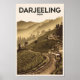 Darjeeling retro vector travel design. Darjeeling is a town in India's West Bengal state, in the Himalayan foothills. It remains the terminus of the narrow-gauge Darjeeling Himalayan Railway. Famed for the distinctive black tea grown on plantations that dot its surrounding slopes.