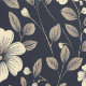 Dark Academia Beige Flowers on Blue Wallpaper