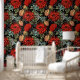 Dark Academia Maximalist Red Dahlia Floral Wallpaper