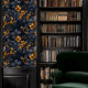 Dark Academia Orange and Blue Floral Wallpaper