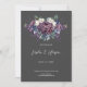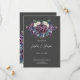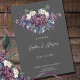 Our gothic wedding invitation suite is perfect for couples who are looking for a dark and moody aesthetic. The watercolor floral bouquet is accented with purple, violet, and indigo flowers, with white roses, giving the suite a bold and dramatic look. The dark coloured background makes the colours pop and creates a stunning contrast.