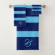 Modern elegant geometric navy blue stripes over changeable white background and customisable monogram.