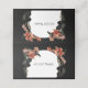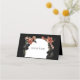 This customisable place card combines elegance with a touch of drama, perfect for a sophisticated event. The dark background is beautifully accented with vibrant orange and blush florals along with lush green leaves framing the guest's name area. The card reads “Thank you for being our guest!” but can be personalised with any message of your choice, making it versatile for weddings, dinners, or special gatherings. The stylish design adds a memorable touch to each place setting, blending gratitude with refined style.