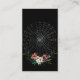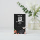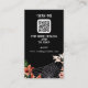 This customisable enclosure card offers a sleek, dark design, perfect for modern or gothic-themed events. Featuring a prominent QR code with instructions to "Scan Me" for RSVP and event details, it adds convenience for guests. The elegant white text is framed by floral accents in warm tones and a subtle spiderweb detail, giving it a unique, sophisticated edge. Ideal for weddings or special events, this card provides an easy and stylish way to direct guests to additional information.