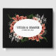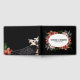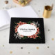This elegant wedding guest book features a customisable design that allows you to add the couple's names and wedding date for a truly personal touch. The cover showcases a dramatic black background, accentuated by a beautiful floral arrangement with shades of coral, white, and green. The flowers surround an oval frame where the names and date are displayed in a classic, vintage-inspired font, giving it a romantic yet bold look.