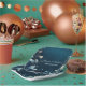Floral wedding plates with the colours of dark teal and aquamarine. There's a beautiful frame of flowers and a gold frame that goes around. Perfect for all sort of wedding themes. The design is very rich and beautiful.