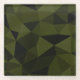 Dark army green black geometric mesh pattern cool glass coaster