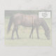 Dark Bay Horse Grazing in Grassy Field Postcard