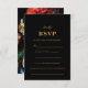 Dark Black and Red RSVP Wedding Invitation Card. Copper coloured text fully customisable. Black background colour can be changed. Dark Floral background on the back of card. Moody, elegant and modern.