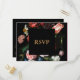 Dark Black Floral Wedding RSVP Postcard