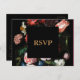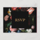 Dark Black Wedding RSVP Postcard. RSVP copper coloured text on front can be customised. Flower background. Back of post card is fully customisable including all text. Our ALEXANDRIA wedding suite collection is filled with florals on both black and red backgrounds all using a copper coloured text. Moody, elegant and modern.