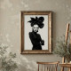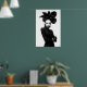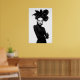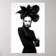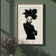 Make a striking statement with this captivating black and white art print, a true masterpiece of avant-garde fashion and artistic expression. This compelling frontal portrait features a woman of intense allure, crowned with an extraordinary, sculptural black hat that unfolds like a dramatic, dark blossom. Dressed in a sleek black turtleneck, complete with elegant leather gloves and shimmering silver bracelets on one wrist, her attire is a study in sophisticated minimalism. Her pale skin, stark black lips, and dramatically winged eyes create a mesmerising contrast against her dark ensemble and the pristine white background, emphasizing her powerful and direct gaze. With arms confidently crossed, this artwork embodies a fierce, mysterious, and undeniably chic elegance. Perfect for modern living spaces, fashion studios, or any decor seeking a touch of unique sophistication, bold artistry, and a truly unforgettable visual narrative.