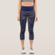 These capri leggings feature a modern dark blue and black stripe pattern.