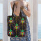 Dark Blue and Gold Art Deco Floral Ornament Tote Bag