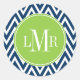 Dark Blue and Green Chevrons Monogram Classic Round Sticker