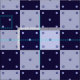 Dark blue and light blue squares with circles