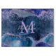 This cutting board features an elegant and glamourous dark blue agate marble background with faux blue glitter accents. The monogram combines handwritten script and modern sans serif fonts for a classy and sophisticated look. This will make the ideal gift as it can be customised with a name and initial. The sequins and distressed texture creates the perfect blend of chic and grunge.