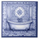 "dark blue and white", "bath tub room decor", "fancy house wash room", "washing cleaning skin care", "body care hygiene", "bathroom tile design ideas", "stylish traditional ceramic tile","funny humourous shower humour", "whimsical whimsy tile art", "clean bathing showering basin"