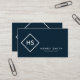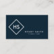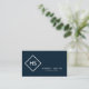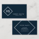 Dark Blue and White Minimalist Geometric Monogram Business Card