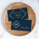 A minimalist dark blue monogram business card featuring a white bordered geometric shape. This business card is ideal for various professions, both corporate and creative: Consultants, Bloggers, Interior Designers, Fashion Stylists, Event Planners, and Freelancers.