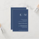 Elevate your wedding experience with our Modern Dark Blue and White Wedding Invitation, boasting contemporary fonts and a monogram that beautifully symbolises your eternal love. Crafted from premium-quality, luxurious cardstock with a sleek design, this invitation is fully customisable, allowing you to infuse it with your personal details. Make your entire wedding journey unforgettable, from the very start to the grand finale. Explore our collection to discover more products perfectly suited for a Dark Blue and White Themed Wedding!