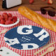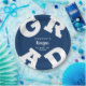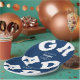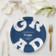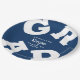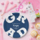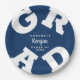 GRAD in bold white lettering curves around the edges of these dark blue graduation party paper plates - available in 2 sizes. Congratulations above the name of your graduate and the Class of below. The perfect addition to your table decor for upcoming grad parties. MATCHING ITEMS and more colours in our collection.