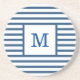 Get a cute simple modern dark blue and white stripped coaster with your custom monogram name or initials, to your cosy home or office! Made with sandstone. Customise it with your favourite font and colour to make it your one and only happy coaster!