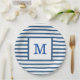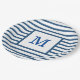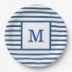 Dark Blue and White Stripes Custom Monogram Paper Plate