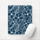 Dark Blue and White Tropical Flowers Mouse Pad